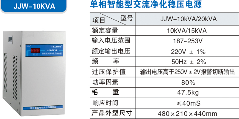 JJW系列智能型交流凈化穩(wěn)壓電源集凈化、穩(wěn)壓、抗干擾和自動保護(hù)等多功能于一體,具有穩(wěn)壓范圍寬、響應(yīng)速度快、精度高、抗干擾、抗負(fù)載沖擊能力強(qiáng)、壽命長、噪音低等優(yōu)點。